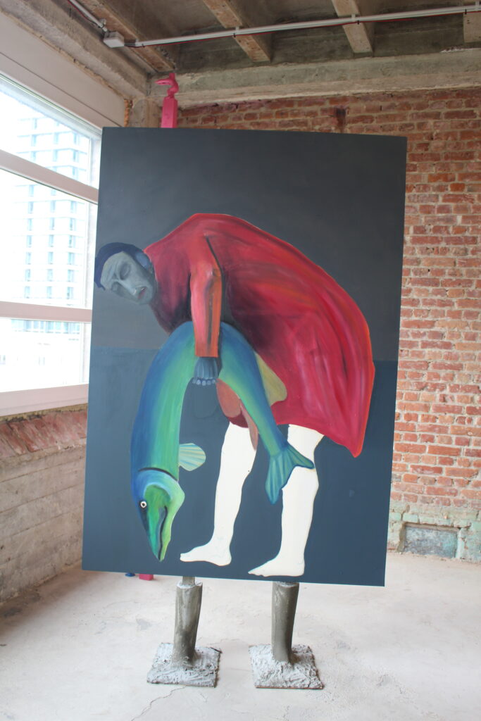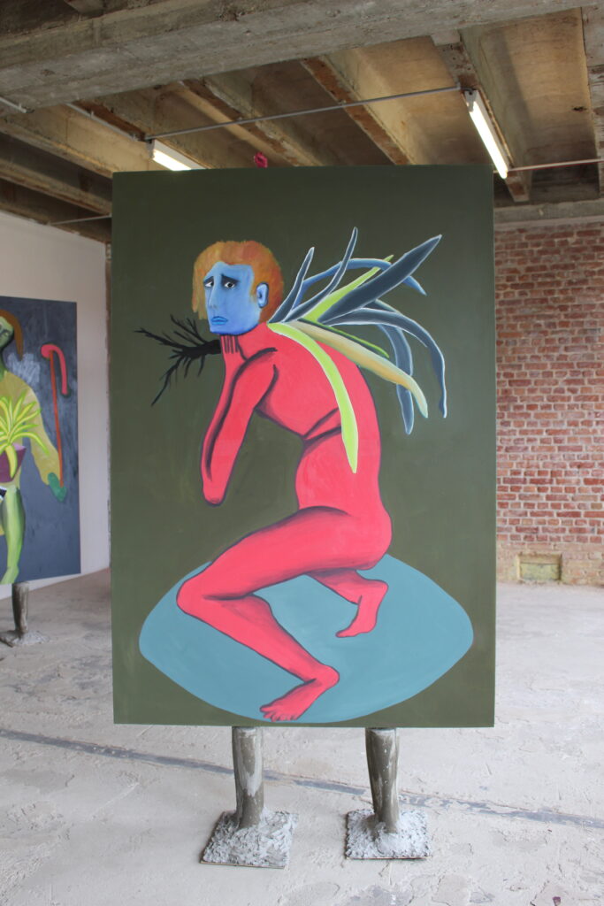 Moi sanglier, 2025, huile sur toile, 160 x 115cm Photo: Hugo SauvageLa piscine brûle: un héritage, 2025, huile sur toile, 180 x 130 Photo: Hugo SauvageUn ciel de gourou.e, 2025, acrylique sur toile libre, 580 x 800 cm Photo: Yann Wauters. Peinture réalisé pour le clip Gourou.e de Chloé Larrere et Sarah WéryL’ado, 2020, huile sur toile, 130 x 180 cm Photo: Eva JoncquelLe cyclope 2020, huile sur toile, 130 x 180 cm Photo: Eva JoncquelLe boxeur 2020, huile sur toile, 130 x 180 cm Photo: Eva JoncquelLe porteur de brouette 2021, huile sur toile, 130 x 180 cm Photo: Salim Santa LuciaTraveling inversé 2022, huile sur toile, 130 x 180 cm Photo: Salim Santa LuciaUn vent nouveau